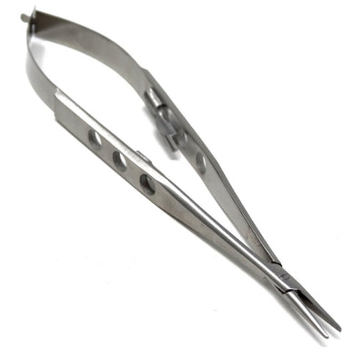 Premium Quality Castroviejo Needle Holder 7" Curved, Fenestrated Flat Handle