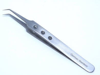 Stainless Steel 3D 5D 6D Volume False Eyelash Extension Tweezers A Type Angled, Fenestrated Handle, Fine Point, Premium Quality