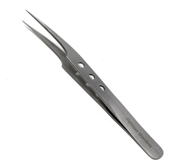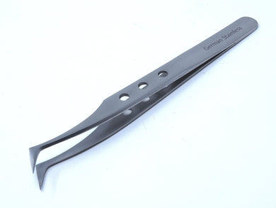 Stainless Steel 3D 5D 6D Volume False Eyelash Extension Tweezers Semi Angled, Fenestrated Handle, Premium Quality